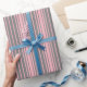 Regalo Papel de envolvimiento de rayas rosadas grises y c