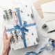 Escena de bosque de bosques pintados de acuarela con un ciervo de reno y un ciervo de reno en un patrón repetido.