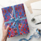 Un impresionante envuelto blanco adornado con estampados de estallido radiante en oro, plata y azul profundo, ideal para crear regalos llamativos para festividades, cumpleaños o celebraciones especiales.