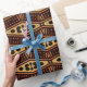 Este singular papel de envoltura tiene una interpretación creada digitalmente de un tradicional patrón de paño negro étnico africano hecho en tonos cálidos de tierra y negro