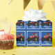 El tractor rojo favorito de un granjero está sobre un fondo azul en este divertido diseño.