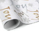 Elegantes Navidades envolviendo papel, con texto gráfico de aspecto purpurina que lee Joy hecho en color plata, oro y bronce, con un fondo blanco. Los copos de nieve blancos de bonito añaden un acento festivo a este encantador periódico vacacional.