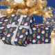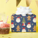 Navidades de vacaciones envolviendo papel con Papá Noel y hombre de pan de jengibre