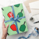 Empaquetamiento de regalo creativo con tema de pickleball o decoración fiesta con un patrón de remo rojo, verde y blanco.