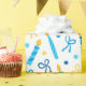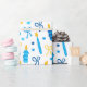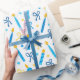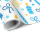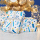 ¡Este papel de envolvimiento moderno y a la moda es fabuloso! Tiene velas azules y doradas, Estrellas de David y arcos. Consigue lo suficiente para envolver todos tus regalos.