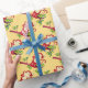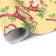 Aquí hay un divertido papel de envoltura que presenta un patrón repetido de un mono rojo en la rama de un árbol con hojas verdes. ¡Genial para el Año Nuevo Chino o en cualquier época del año!