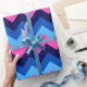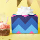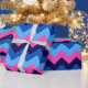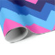 Un rollo de papel envuelto con un diseño de patrón bonito y colorido de chevrones azules y rosas.