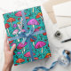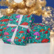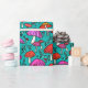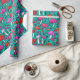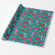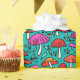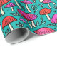 Este papel de envoltura presenta un patrón de setas lindo y colorido con un fondo turquesa. La idea perfecta para envolver regalos para alguien a quien le gustan los adorables ilustraciones de hongos.