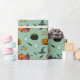 Feliz Halloween II -combinando íconos de Halloween -caldero de bruja, gorra de bruja, fantasmas, murciélagos y calabazas en un patrón sin fisuras, de fondo sobre verde.