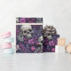 Envuelve tus regalos con estilo con este diseño único con flores púrpura bordadas y cráneos grises. Perfecto para añadir un toque artístico y atrevido a cualquier ocasión, este papel de envoltura combina el estilo gótico con la elegancia floral para una presentación realmente destacada.