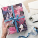 Papel de envoltura floral de bulldog blanco y negro. Hermosas flores y flores dulces rosas y moradas. El envoltorio de regalo es perfecto para vacaciones, cumpleaños, El día de San Valentín, aniversario o Navidades para cualquier padre mascota o amante del perro.
