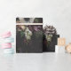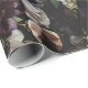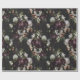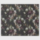 Un patrón floral oscuro, exuberante y decadente, con flores morales como peonía, ranunculus y anémona en blanco y violeta rico.