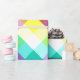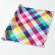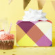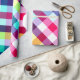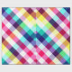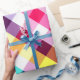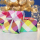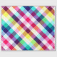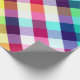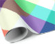 Un rollo de papel de envolvimiento con un colorido diseño de patrones de manta en colores arcoiris.