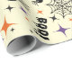 "Papel de envolver sin foco: arañas, telaraña y boo!" está lleno de espeluznantes telarañas, criaturas arrastrando y escalofriantes palabras de Halloween como "boo", lo que lo hace ideal para envolver regalos de Halloween.