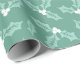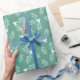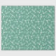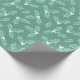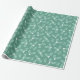 Este papel de envoltura presenta hojas huecas con bayas blancas sobre un fondo verde.