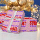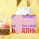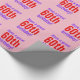 Este diseño de papel de envoltura con temática mínima de cumpleaños incluye un mensaje como "¡Que tengas un gran cumpleaños número 60!", donde el número de cumpleaños puede ser personalizado. El papel de envolver como este podría usarse para envolver regalos que se dan para celebrar el cumpleaños de alguien. Tiene colores como rosa, violeta y rojo.
