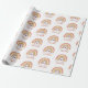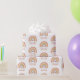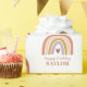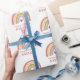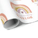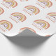 El Papel de envolvimiento de cumpleaños púrpura Rainbow Boho Peach presenta un adorable dúo de arcoiris en tonos rosa, rubor, mostaza, agua y marina, junto con caligrafía moderna.