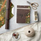 Feliz Navidad, elegante tipografía negra con fondo de árboles de Navidad y diseño de patrones de repetición para tu alegría festiva.