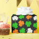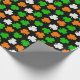Este divertido patrón presenta trajes de colores verdes, blancos y naranjas sobre un fondo negro. Ideal para el día de San Patricio.