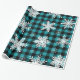 Copos de nieve sobre papel de envolvimiento Verde azulado con papel negro