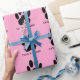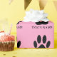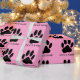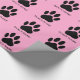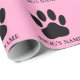 Huellas de perro. Papel de envolver personalizado para los regalos de los perros. Color negro sobre un fondo rosado. Edite el nombre del perro para hacer personalizado este papel de embalaje.