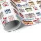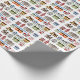 Elegante Felicitaciones nueva casa, casa de regalo de envolver papel, con un colorido patrón de casas, contra un fondo blanco. Personalice el texto para leer lo que desee. Papel de envolver para todos esos regalos de calentamiento de la casa. Elija entre tres estilos y tamaños de papel diferentes.