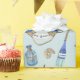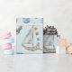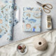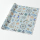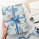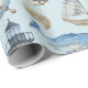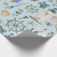 Papel de envoltura de regalo con fondo azul marino con elementos de decoración costera pintados de acuarela.