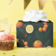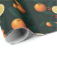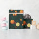 Papel de envolvimiento de vacaciones sofisticado de cítricos y botánicos. Presenta un diseño acogedor con naranjas, fresas y vegetación. Una presentación elegante para cualquier regalo.