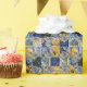 Papel de envolver divertido en tonos azules y amarillos con corazones. Vea tarjetas de notas, tazas y más que coincidan con un patrón similar o similar