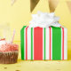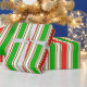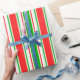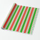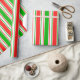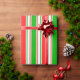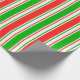 Este diseño de papel de envoltura presenta un patrón a rayas estilo Navidad con colores como rojo, blanco y verde. El papel envuelto como este puede ser usado cuando se preparan regalos o regalos para celebrar un cumpleaños, un boda, un aniversario o algún otro evento.