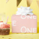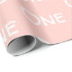 El primer cumpleaños del bebé. Papel de envoltura rosa pastel con tipografía blanca 'One'. Perfecto para envolver un regalo de bebé. Bonita sombra pastel suave. Papel de envolvimiento rosado para el primer cumpleaños.