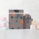 "Papel de envolver sin foco gris con fantasmas y estrellas" muestra encantadores fantasmas a la deriva a través de un cielo nocturno lleno de estrellas, junto con palabras festivas de Halloween como "boo", lo que lo hace ideal para una celebración espeluznante.