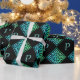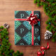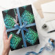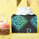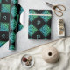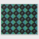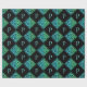 Un trozo de papel de envoltura de monograma negro con un diseño de mosaico de diamante repetido de nudo celta azul-verde. Monograma tus iniciales o el inital del destinatario y hazlo un regalo único!