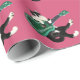 Un gato blanco y negro fresco se asoma a una ukulele verde. Un divertido papel de envoltura musical para un regalo especial.