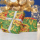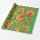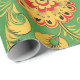 Papel de envoltura de Hohloma ruso, arte ruso, fresas rojas, hojas amarillas, fondo negro