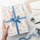 Este papel de envolvimiento de corte y moda presenta llamas y arcos de colores pasteles. Es el papel de envoltura perfecto para un regalo de una ducha de bebé o el cumpleaños de un niño.