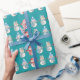 Este papel de envolvimiento de muñecas de nieve verde marino es perfecto para presentar su tema fiesta de invierno. Este artículo muestra un patrón de 3 hombres de nieve usando bufandas de invierno y gorras para sentir las vibraciones de invierno!