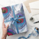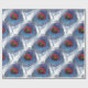 Papel de envolver elegante con hermosas plumas de pavo real de tono azul sobre fondo blanco.
