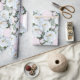 Papel de envoltura de Rosa. Las rosas blancas hacen un patrón sobre el papel de alta calidad. El fondo es rosa pálido. Las hojas rosas agregan un color de acento verde bonito.