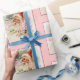 Haz que tus regalos de vacaciones sean especiales con este brillante rollo de papel envolvente de 30" x 60’ con imágenes de un San Nicolás vintage en medio de cintas huecas y rosas en blanco con fondo rosado. Vea la invitación, sobre, cuadro de favor, etiqueta de favor, etiqueta y pegatina cuadrado coincidentes. Vea toda la colección de papel de ajuste de vacaciones en los TOUCHES ESPECIALES | Sección de favoritos de partido.