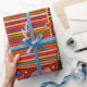 Mola arca de Noé, amarillo azul rojo, papel envolvente de los Navidades, papel indio Kuna, arte folclórico tribal, arte folclórico étnico, papel bohemio, papel de descomposición, arca Noahs religiosa, dos por dos, Virginia Vivier, arte folclórico de Vagabond, arte folk indio de Kuna.