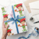 Elf con regalos y fondo blanco envolver papel Adorables Navidades envolver papel para regalos de cualquier niño
