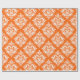 Elegantes damascos florales blancos en un patrón geométrico sin costuras sobre el fondo naranja de halloween.