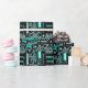 Diseño de Guay con un acercamiento a una placa de circuito de ordenadores en blanco, negro y azul con un toque festivo. Acondicionamiento de papel con un diseño de personalizable para que pueda personalizar con su propio texto, imágenes e ideas. Imagen creada utilizando una fotografía original y técnicas digitales.