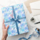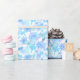 Una gran variedad de formas de copos de nieve, colores y tamaños dispuestos en un patrón repitiendo sin fisuras que tiene un maravilloso efecto tridimensional. Escamas blancas, verde azuladas, azules y lavanda sobre un fondo blanco sólido. Magnífico y único. Por Melissa J Barrett
