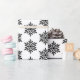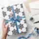 Este papel de envoltura de Navidades se muestra con un estampado festivo de copos de nieve en blanco y negro. Personalizar este artículo o compra tal cual. imagen de stock