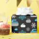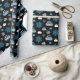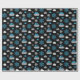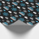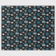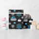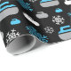 Papel envuelto con un copo de nieve y un patrón de roca curvada en azul, blanco y gris sobre fondo negro. Perfecto para curadores y abanicos.