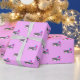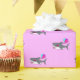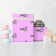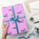 Papel envuelto con tiburón adorable de cumpleaños con flores rosadas sosteniendo globos fiestas en colores rosa, violeta y turquesa. El diseño es personalizable.