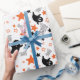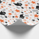 El "Papel de envolvimiento de Halloween de Fantasmas y Estrellas sin foco" presenta fantasmas juguetones flotando entre estrellas brillantes y acentos espeluznantes de "boo", perfecto para envolver regalos de Halloween con una atmósfera divertida y espeluznante.