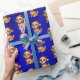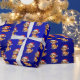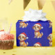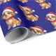 Nuestro papel de envuelto de Navidades de perros de Relieve metalizado azul muestra a un perro de dibujos animados adorable y adorable con un sombrero de Santa, adecuado para envolver regalos para niños y niños.